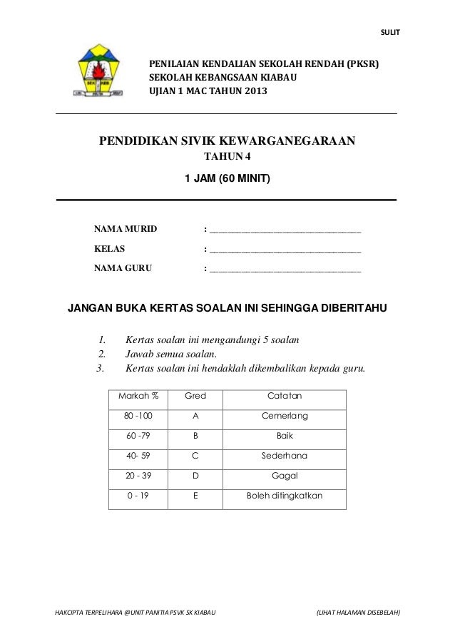 - Contoh Soalan Peperiksaan Tahun 3 Kssr
